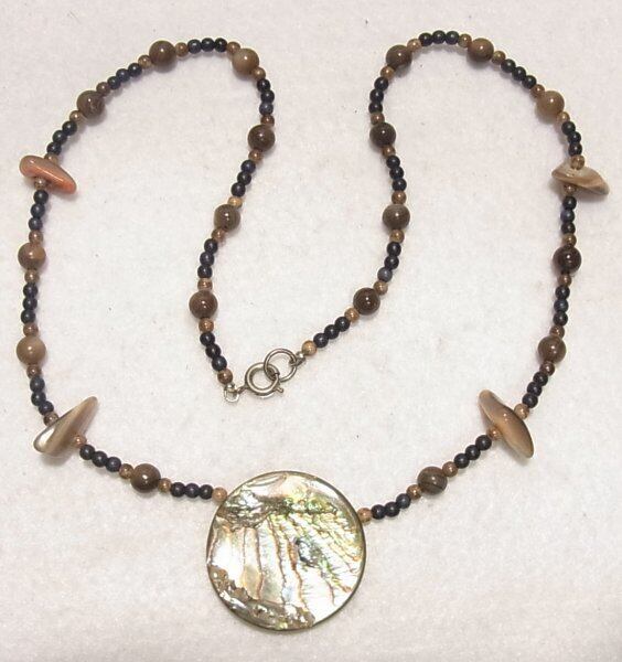 ヴィンテージネックレス 天然貝と天然石のビーズネックレス アクセサリー格安セール K1172N