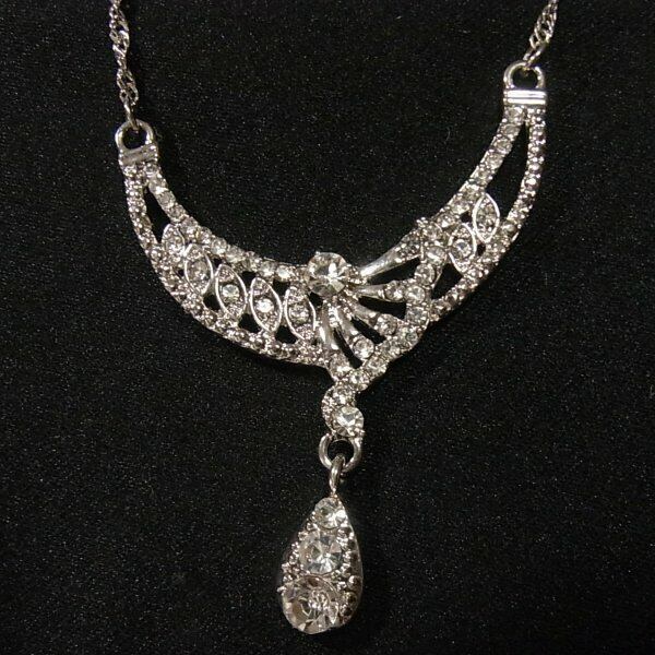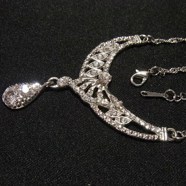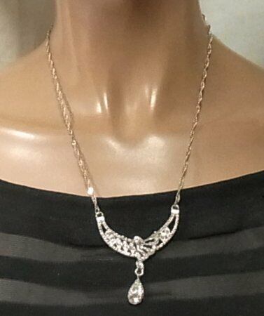 ●新品 ●クリアなラインストーンのYネックレス 銀色メタル 49~54cm きれいです ★送料は2300円以上お買い上げで無料です。 これ未満では全国一律370円(レターパックライト)