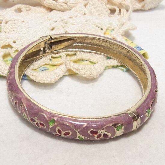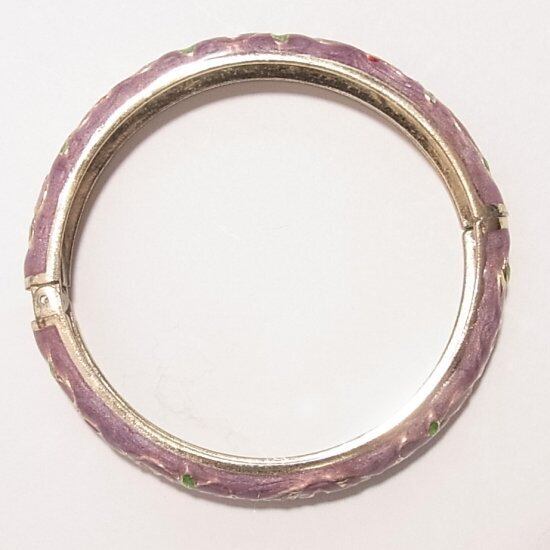 ラベンダーのエナメルの花柄クランパーブレスレット コスチュームジュエリー格安セール K1274BR
