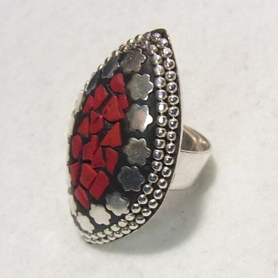 赤珊瑚のかけらインレーの大ぶりのフリーサイズリング アクセサリー卸値以下でセール K1634R
