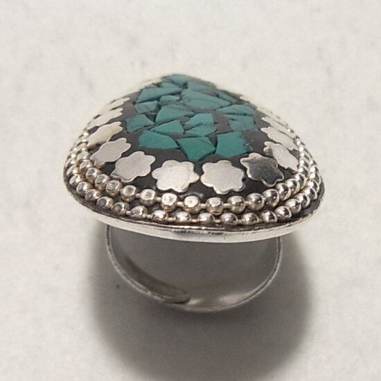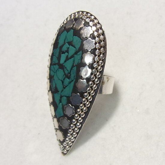 ●天然石、マラカイトのかけらインレーの大ぶりのフリーサイズリング