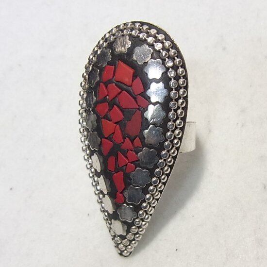 ●赤珊瑚のかけらインレーの大ぶりのフリーサイズリング