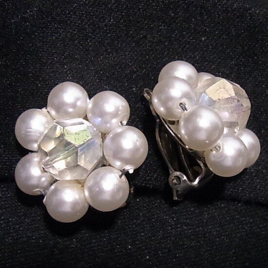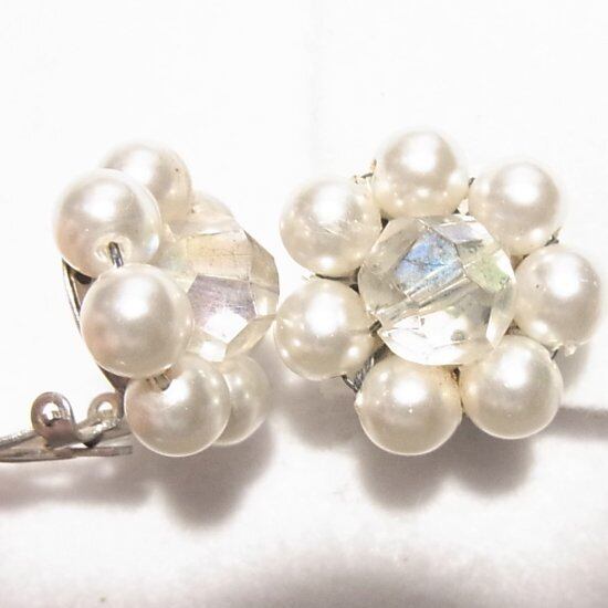 JAPAN 白いビーズクラスターイヤリング アクセサリーセール K1739E