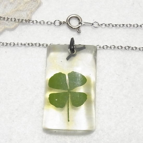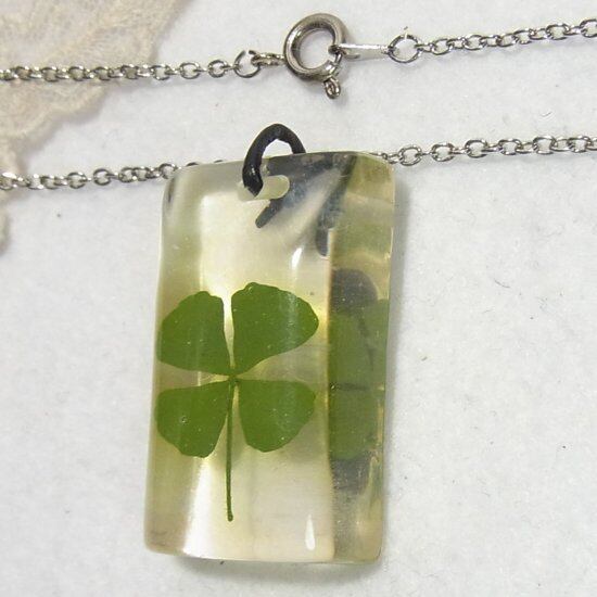 クローバーをルーサイトプラスティックに閉じ込めてあります