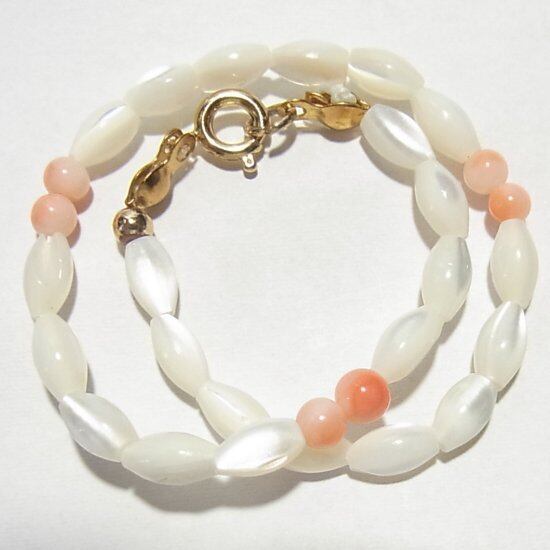 ●貝(MOP)と珊瑚のビーズのブレスレット