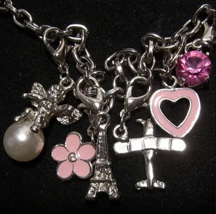 天使、エッフェル塔、花、飛行機、ハート、ピンクガラス
