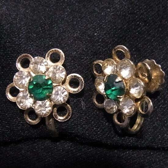 ラインストーンの花型イヤリング ヴィンテージイヤリング卸値以下でセール K2040E