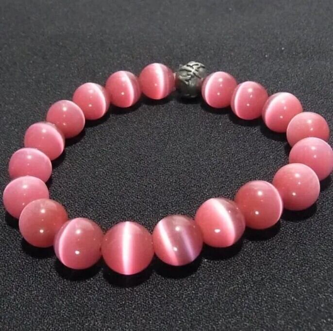 ピンクのキャッツアイガラスのビーズ製ストレッチブレスレット コスチュームジュエリー卸値以下でセール K2042BR