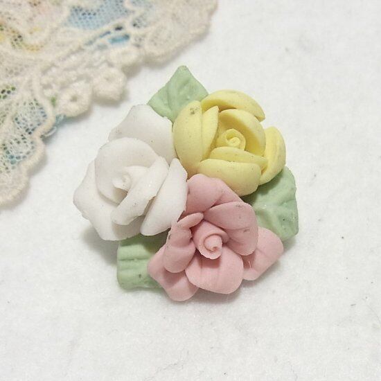 陶器製の薔薇のブローチ ヴィンテージブローチ卸値以下でセール K2055B