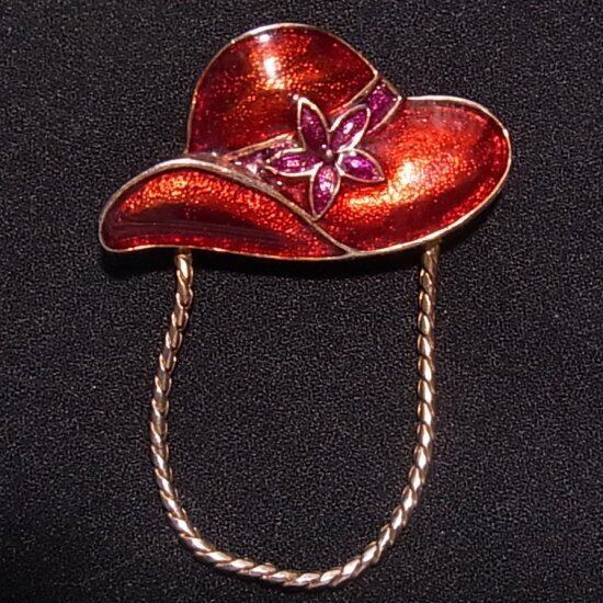 赤いエナメルの帽子のブローチ コスチュームジュエリー卸値以下でセール K2078B