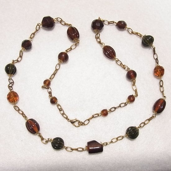 ブラウンのガラスビーズのロングネックレス コスチュームジュエリー格安セール K1144N
