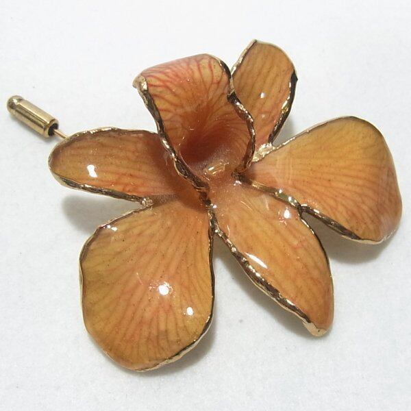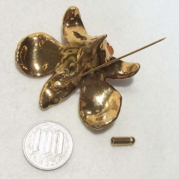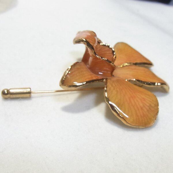 ●1990-2000’s ●大ぶり、エナメル樹脂のカトレアの花のスティックピン ゴールドトーンのメタル製 スタイリッシュでオシャレ、 きれいなオールドストック新品 ◆年代は当店の推定です。
