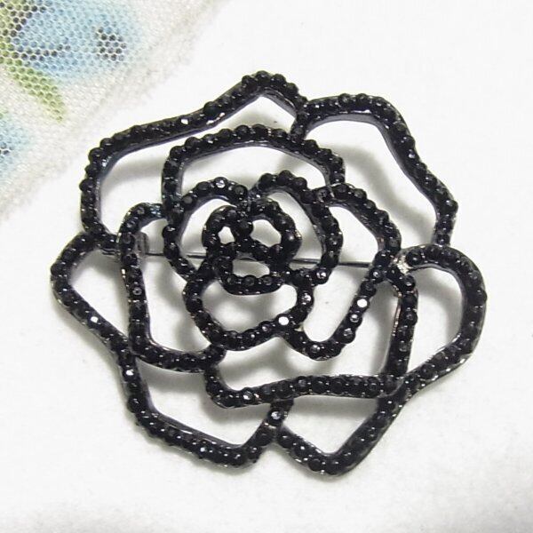 ●2000’s ●黒い薔薇のブローチ 黑い細かなラインストーン 黑いメタル台 清楚な良いムードです ◆年代は当店の推定です。