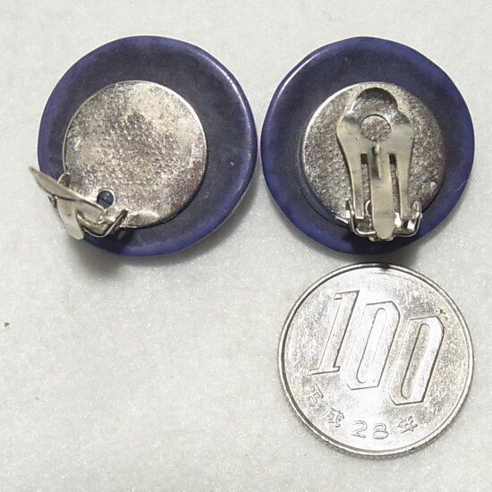 ●1980-90’s ●クリップ式 ●紺色のプラスティック製ラウンドイヤリング 銀色メタル プリティなアイテム、きれいです ◆年代は当店の推定です。 ◆この商品は、古い時代のビンテージアイテムです。