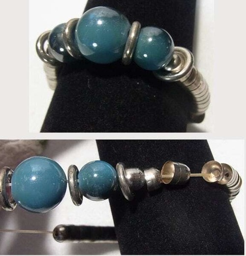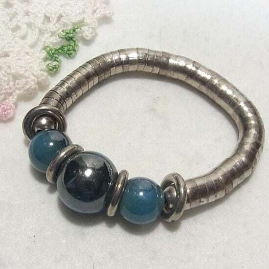 ●2000’s ●ストレッチブレスレット 大玉プラスティックのビーズ シルバートーンのメタル製 ゴムひもでストレッチします。 ちょっと変わった個性的なムードです。 ◆年代は当店の推定です。