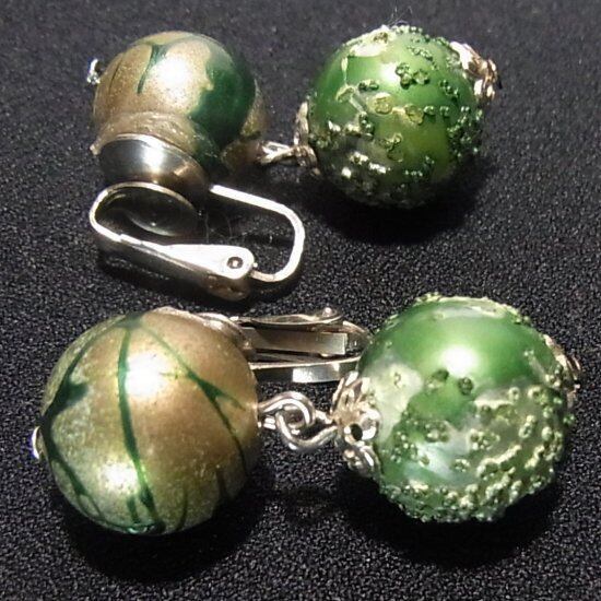 ●1960’s ●クリップ式 ●グリーンのビーズが下がるイヤリング 銀色メタル 独特な風合い、きれいな新品状態です ◆年代は当店の推定です。 ◆この商品は、古い時代のビンテージアイテムです。