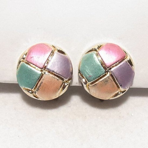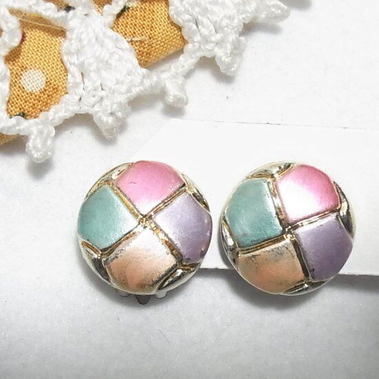 ●1990-2000’s ●クリップ式 ●パステルカラーのラウンドイヤリング プラスティック製 シルバートーンのメタル金具 プリティなアイテムです ◆年代は当店の推定です。